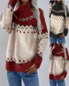 Autumn Winter Women Fashion Christmas Jacquard Knitted Round Neck Long Sleeve Sweater