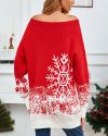 Women Fashion Cartoon Christmas Snowflake Print Off Shoulder Long Sleeve Knitted Sweater