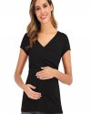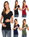 Summer Women Fashion Solid Color Deep V Cross Short Sleeve Breastfeeding Top